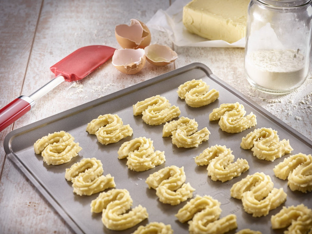 Der Städter Spritzgebäckvorsatz besteht aus Edelstahl und wird mit einer Schiebemaske für fünf verschiedene Spritzgebäckformen geliefert. So bietet sich Ihnen die Möglichkeit, zusammen mit dem KitchenAid Kunststoff-Fleischwolf 5FGA/5KSMFGA leckeres Dessert-, Tee- und Sandgebäck zu formen. Rostfrei und spülmaschinengeeignet ist er ein zuverlässiger Assistent in der Küche.